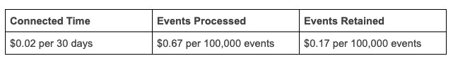 There are several dimensions across which usage-based pricing is calculated. Under the new model deploying an agent in ‘sleeper mode’ is essentially free - the only required cost is sensor connected time which works out to pennies per agent per month. A breakdown of the specific axis as to how usage of the endpoint agent is calculated is as follows.